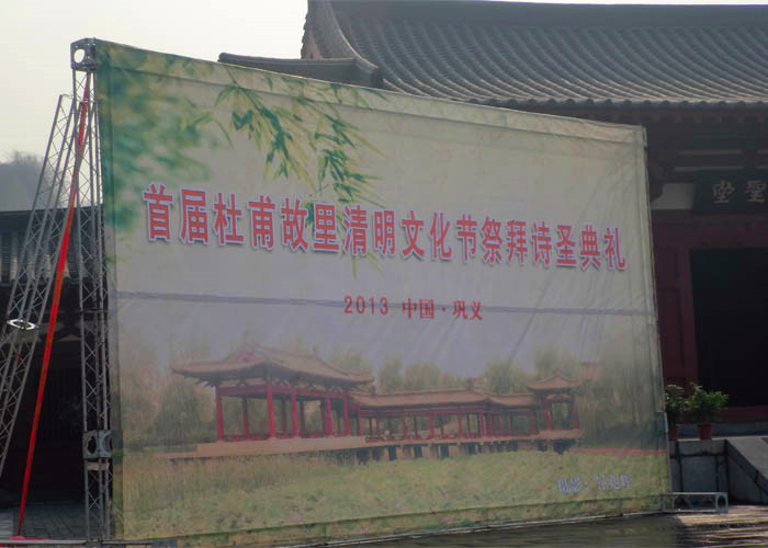 4月5日清明節當天上午9時許,在清明時節的紛紛細雨之中,杜甫國際詩歌節——第三屆清明節杜甫故里祭拜“詩圣”大典在鞏義境內杜甫故里拉開帷幕。來自海內外的近百位詩人、學者等各方來賓云集“詩圣”故園在此一起祭拜“詩圣”。本屆詩歌節邀請了近百位海內外知名詩人參加,其中有臺灣詩人鄭愁予;大陸詩人舒婷、王家新、耿占春以及韓國詩人黃東奎等。