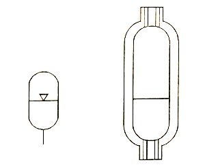(1)利用彈簧的壓縮和伸長來儲存、釋放壓力能 (2)結構簡單,但容量小 (3)供小容量、低壓(p≤1~1.2MPa)回路用,不適用于高壓或高頻的工作場合 |